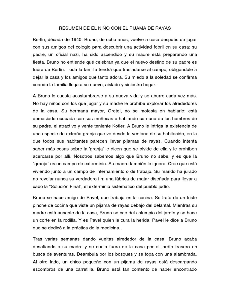 Fuente : resumiendolo.com Sinopsis De El Niño Con El Pijama De Rayas Word