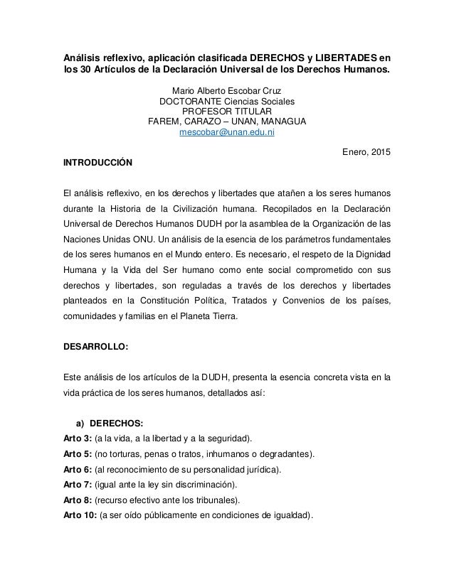 Análisis Reflexivo De Los Derechos Y Libertades Contenido En