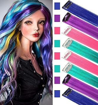 Fuente : peinandonubes.com 2255cm Extensiones De Cabello Clip Mechas De Colores Fantasía 10 Tirasset Pelo Sintético Natural Para Niñas Muñecas Postizos Pelucas Accesorios