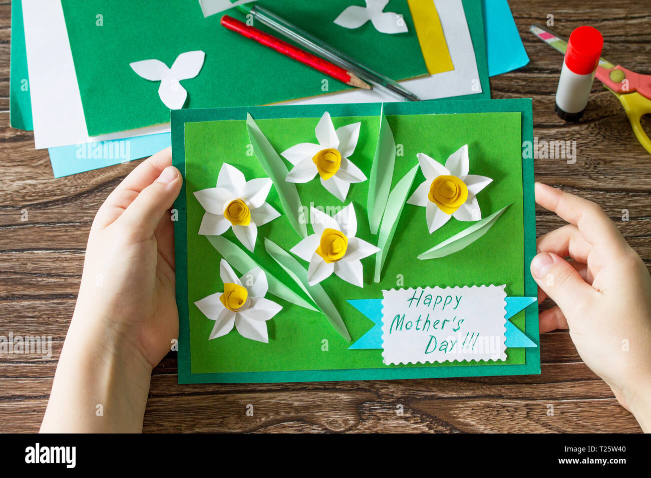 Fuente : manualidadesplay.com El Niño Tiene Tarjeta Del Día De La Madre Con Los Narcisos