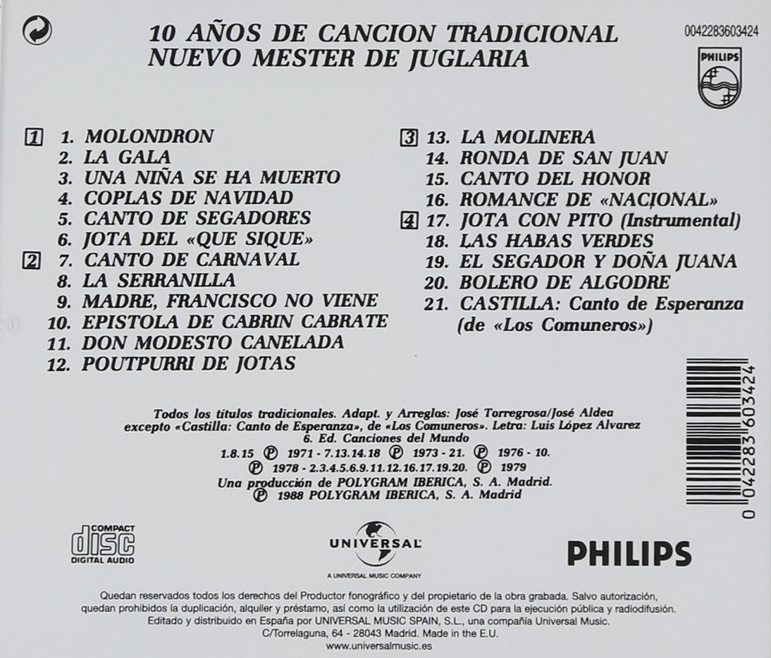 Fuente : amazon.com 10 Años De Cancion Tradicional By Nuevo Mester Juglaria