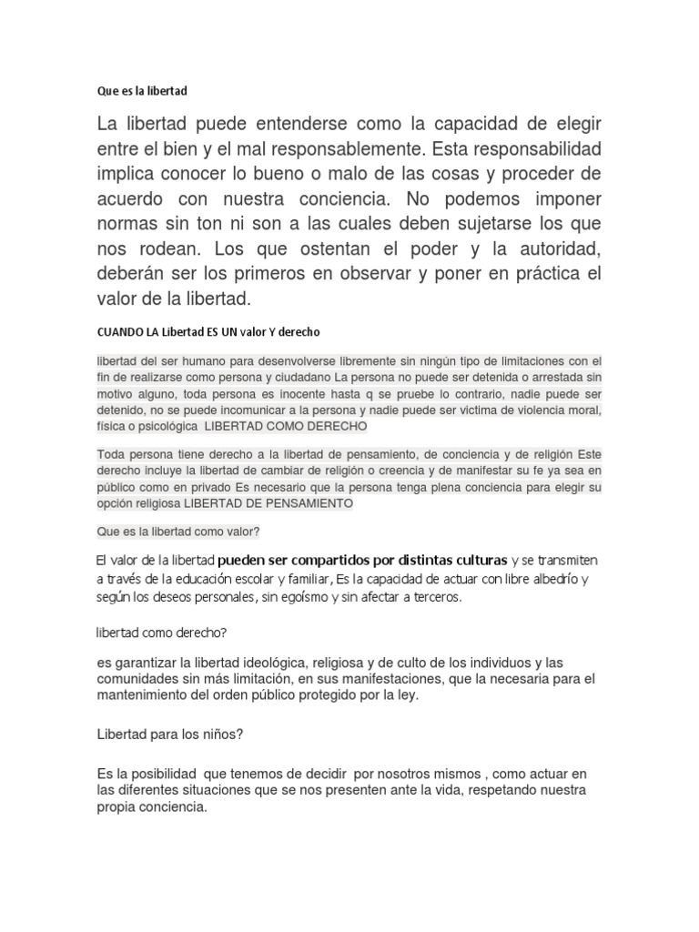 El Valor De La Libertad Para Niños. Que Es La Libertad Libertad Derechos