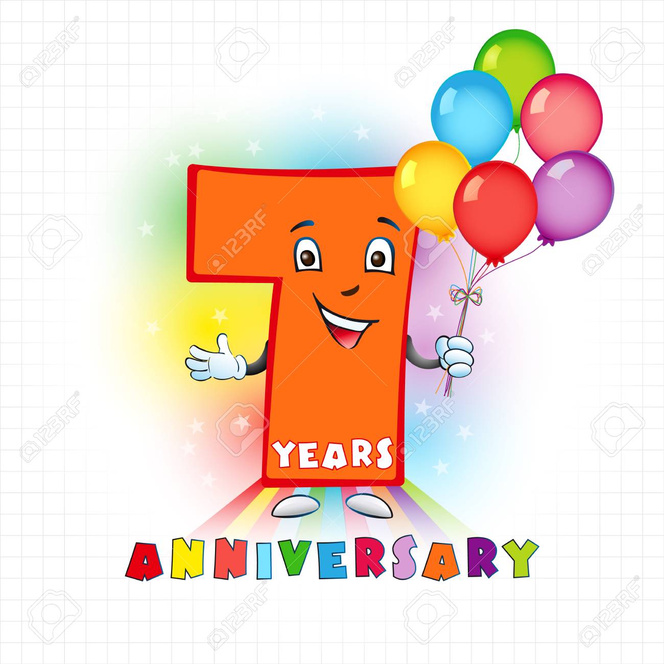 Logotipo Animado De Siete Años 7 Aniversario Logotipo Divertido Tarjeta De Colores De Cumpleaños De Los Niños Con Un Dígito Personificado Muchos